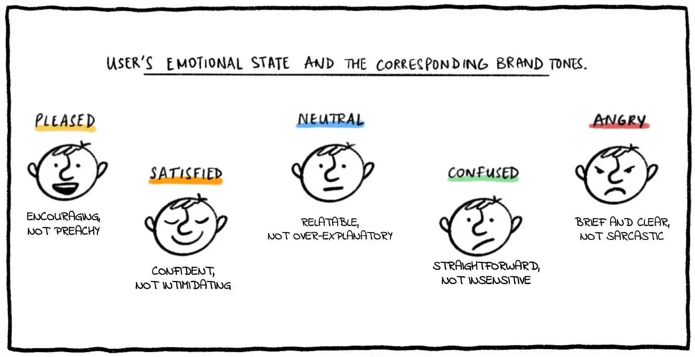 It’s crucial to focus on emotion for a cohesive brand voice. Don't stress if it doesn't come naturally the first time. Just continue mapping tones to users’ emotional states as you gain more insight into your users.