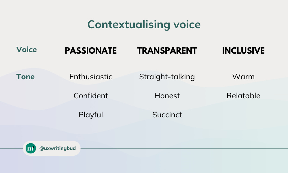 Once you've established the different tones, you need to consider how to apply them in practice. Again, take the time to think through the different scenarios and contexts.